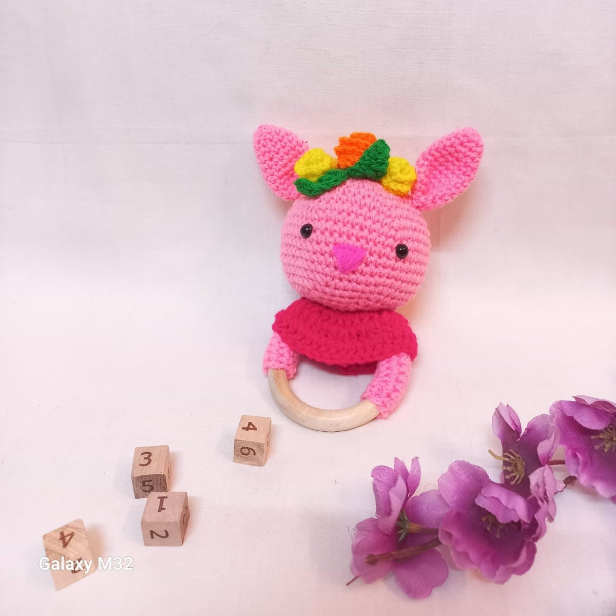Our Bunny Rattle Toy is an adorable and enchanting companion for your little one's playtime adventures. Crafted with love and attention to detail, this delightful rattle toy is designed to bring joy and comfort to your baby.
