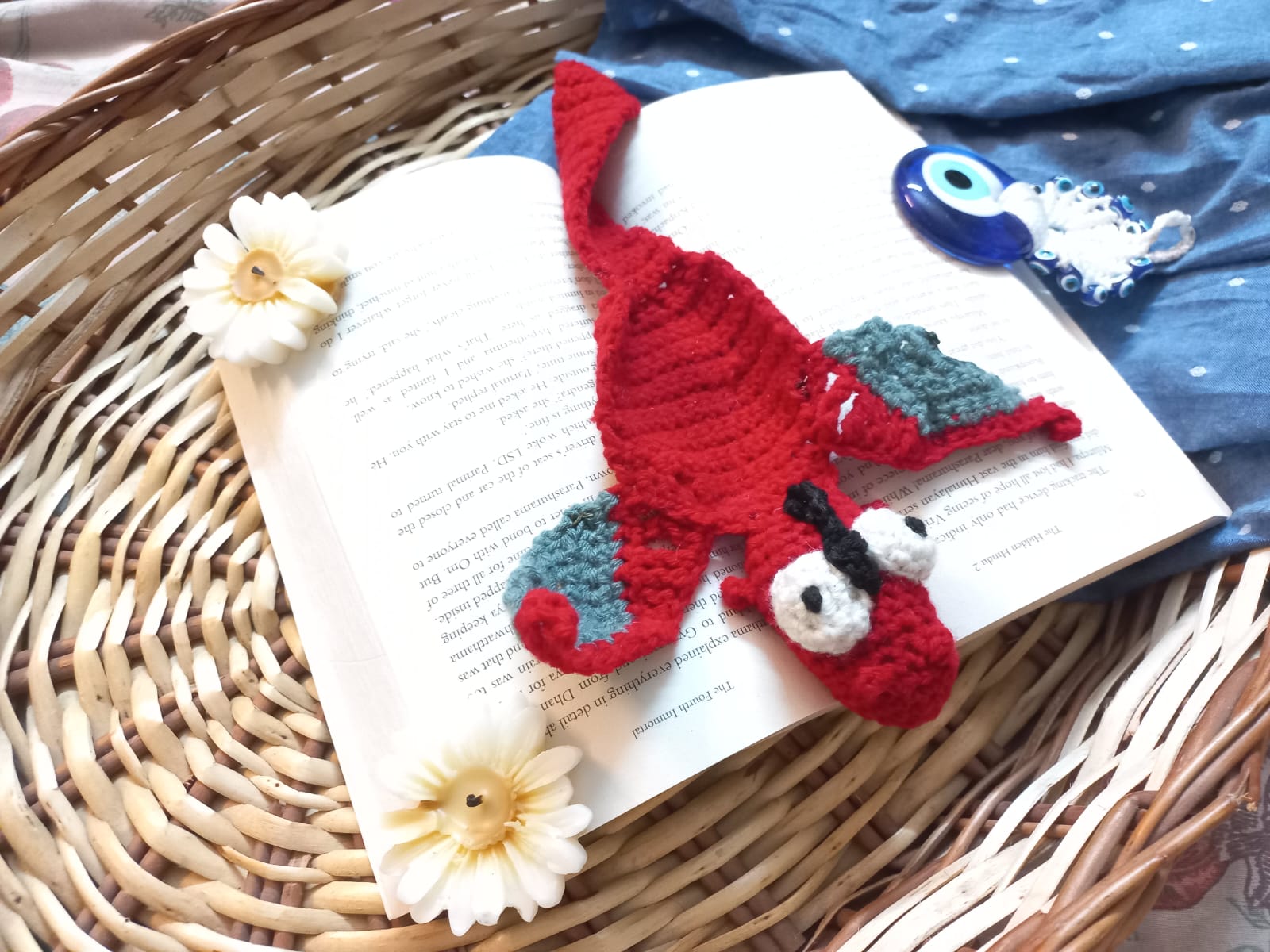 Each dragon is intricately crocheted with soft, durable yarn, featuring detailed wings, a curled tail, and a fierce yet friendly face that peeks out from your book. Lightweight and gentle on pages, it keeps your place securely while adding a bold, whimsical flair.