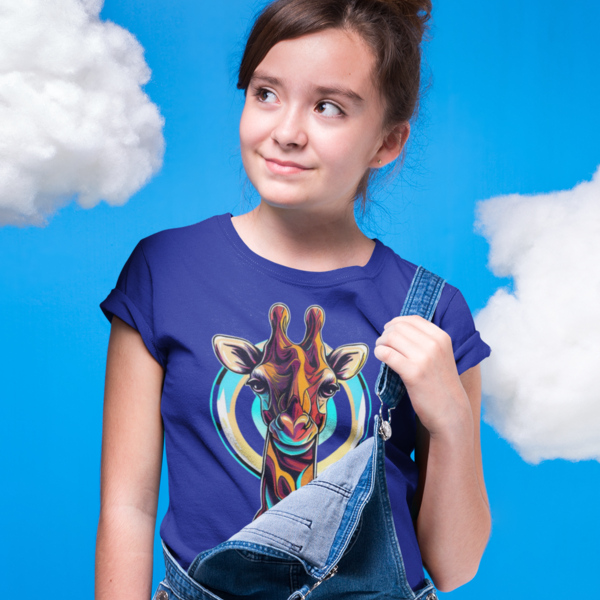 Shop now and let your child embrace the excitement of the "Playful Giraffe Adventure" Kid's Round Neck T-Shirt. Encourage them to embrace the spirit of the wild and to seek out their own adventures, just like the adventurous giraffe in the design.