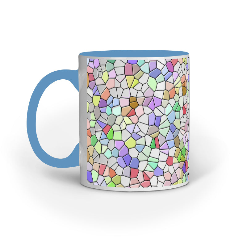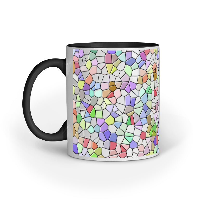 Elevate your coffee or tea experience with our stunning Printed Mugs featuring an abstract design inspired by multi-colored glasswork. These mugs are a perfect blend of art and functionality, capturing the brilliance of stained glass in a contemporary and captivating pattern.