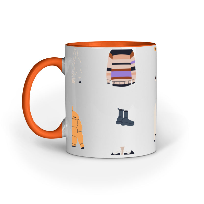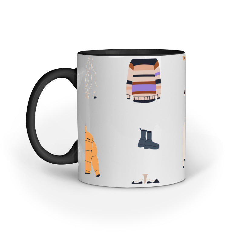 Embrace the coziness of winter with our "Winter Chic" printed mug, featuring an enchanting design that showcases an array of fashionable cold-weather clothes. From cozy sweaters and stylish scarves to trendy boots and warm mittens, this mug brings the essence of winter fashion to life.