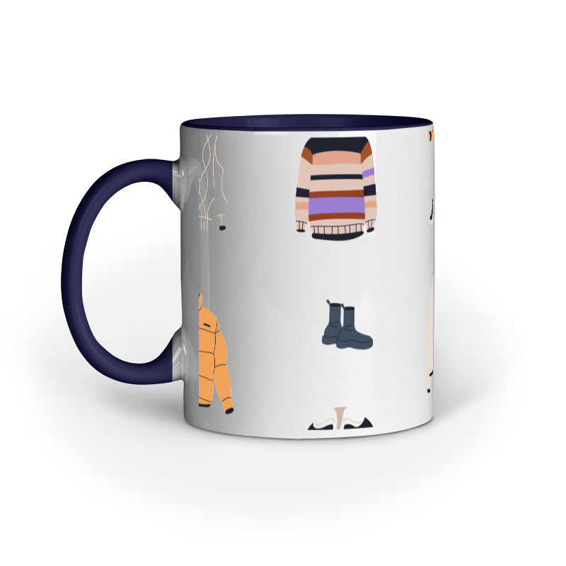 The intricate details of the winter garments, from intricate knits to playful patterns, are beautifully depicted in this design. Whether you're a fashion aficionado or simply love the magic of winter, this mug is a delightful reminder of the joys of dressing for the cold.