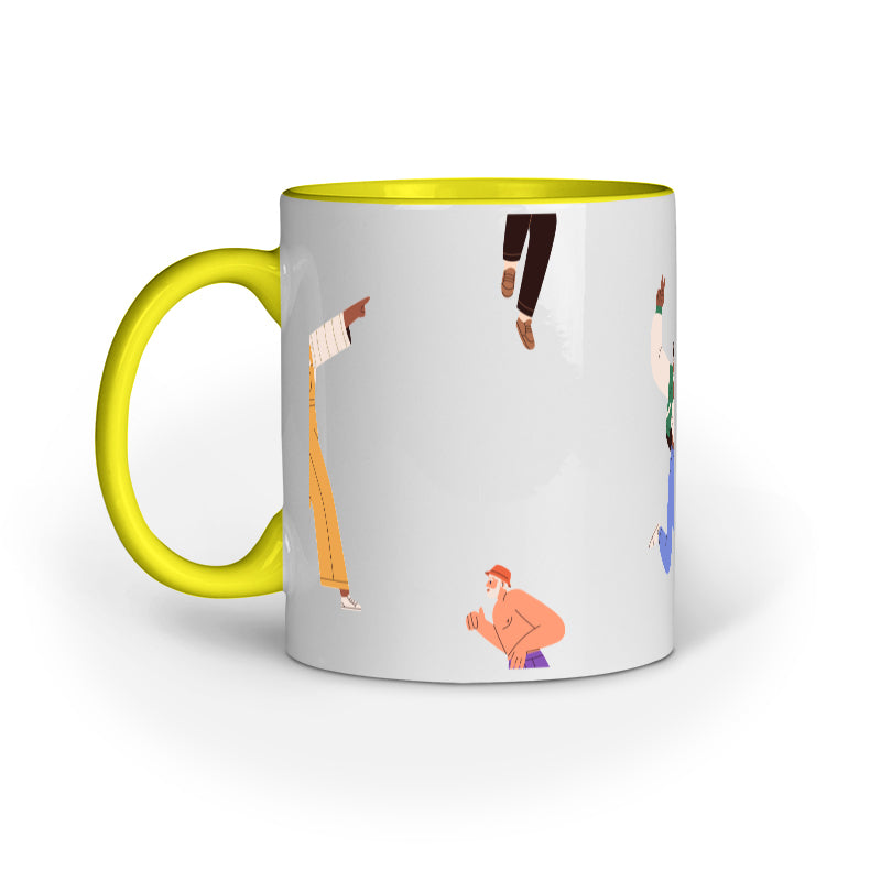 Elevate your mornings with the vibrant energy of our "Dynamic Dance" printed mug. This mug features a captivating design showcasing a group of people dancing joyfully, their movements captured in intricate detail.