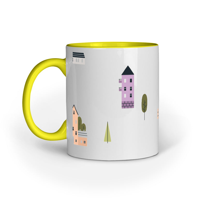 Crafted from high-quality ceramic, the "Scenic Houses and Trees Mug" offers both durability and style. Its ergonomic design ensures a comfortable grip, making it a delightful companion for your favorite beverages.